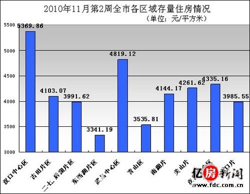 因地理、交通、各城区发展水平以及二手住宅本身新旧程度的不同,各地段之间的二手住宅价格均存在一定差异,但总体价格情况趋于稳定,各区二手住宅11月2周均价如下: