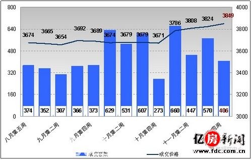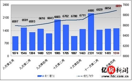 据亿房研究 一周楼市走势相关数据是以亿房网市场研究调研和统计处理得出,由于周价格受该周成交的楼盘及楼盘成交的具体房屋影响较大,故一周走势能反映短期的变化状态,不能代表长期的走势,供市民参考。