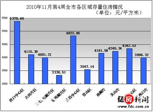 因地理、交通、各城区发展水平以及二手住宅本身新旧程度的不同,各地段之间的二手住宅价格均存在一定差异,但总体价格情况趋于稳定,各区二手住宅11月4周均价如下: