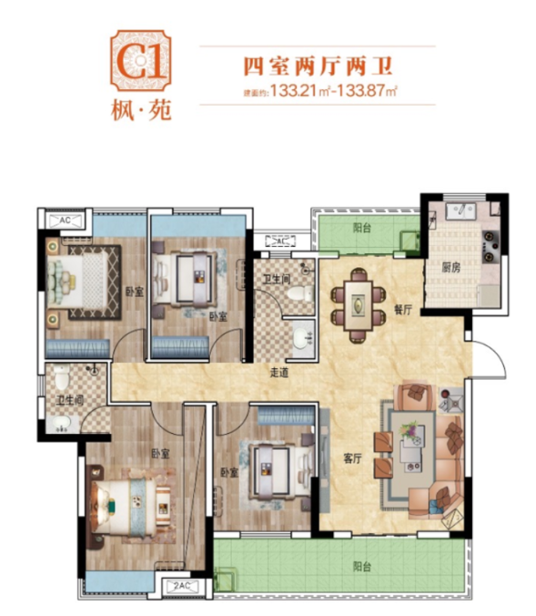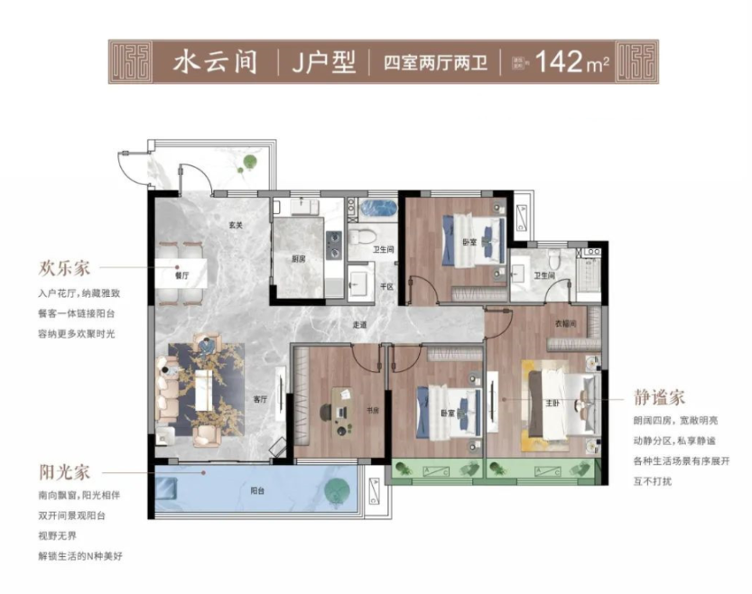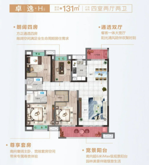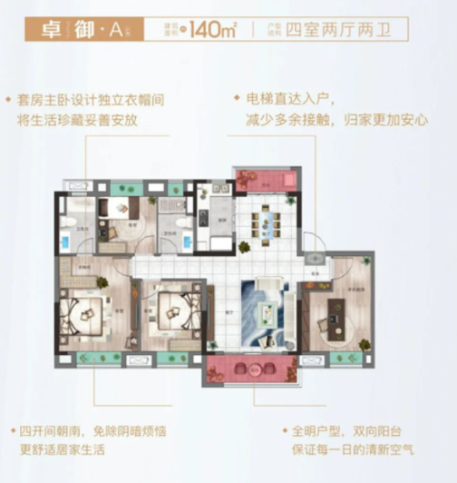 在二孩政策当道的今天,家里不再是一个孩子,更严峻的可能是要面临着老人+两孩住在一起。恰好四室两厅两卫的户型能够满足当下大多数有改善需求的购房者。