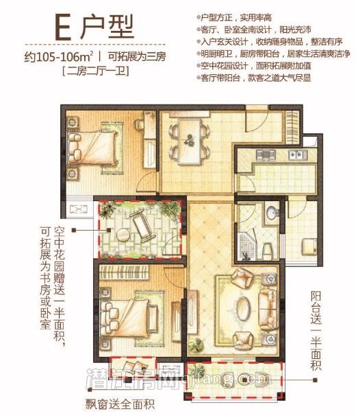 中润.金桥郡位于潜江市章华南路,紧领市体育活动 ,小区环境优美,交通便捷,配套齐全。本房源为现房,开发商直售,3室2厅(其中1赠送1/2面积)。